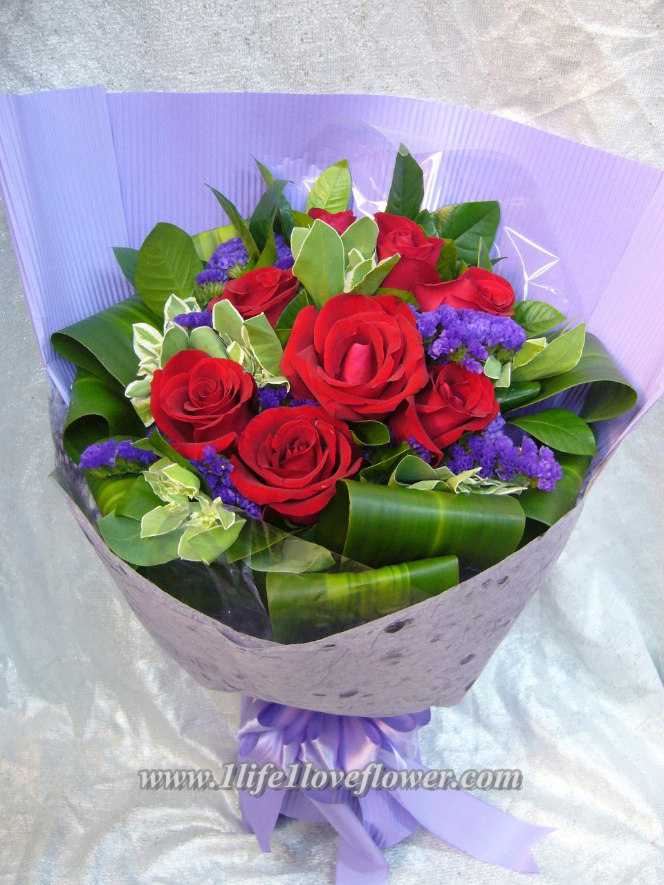 8枝紅玫瑰 / 無忘我 / 葉上花