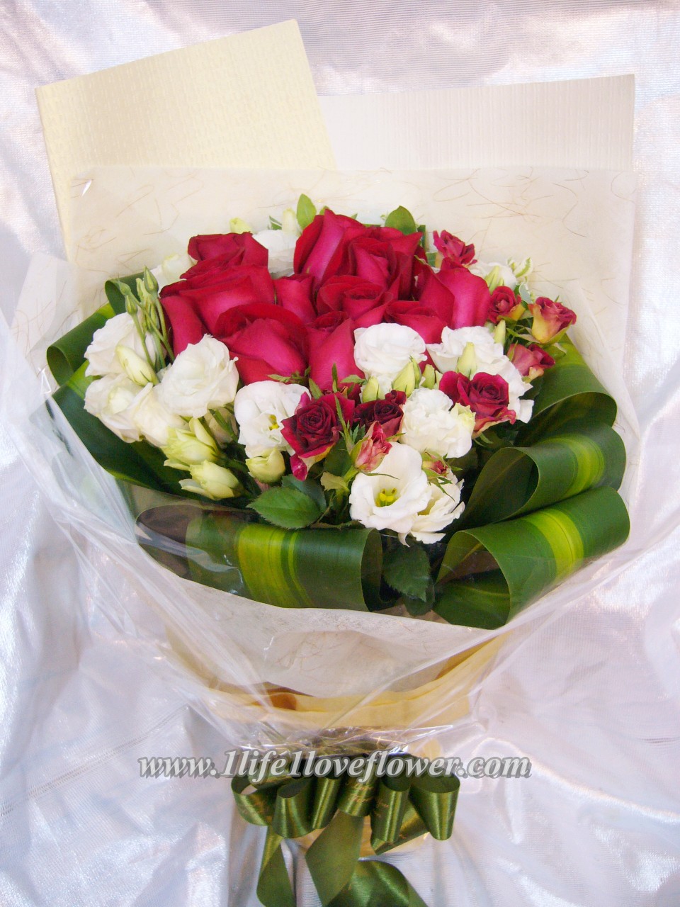 12枝紅玫瑰 / 白色桔梗 / 鑽石玫瑰