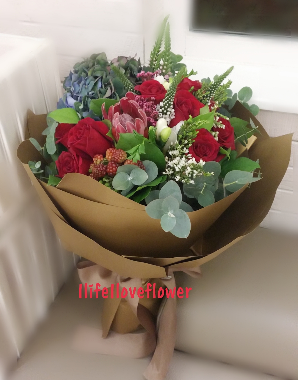 20支肯雅紅玫瑰加荷蘭襯花級綉球