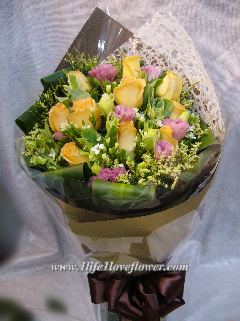 12支假日玫瑰, 加3種襯花. 清新感覺.