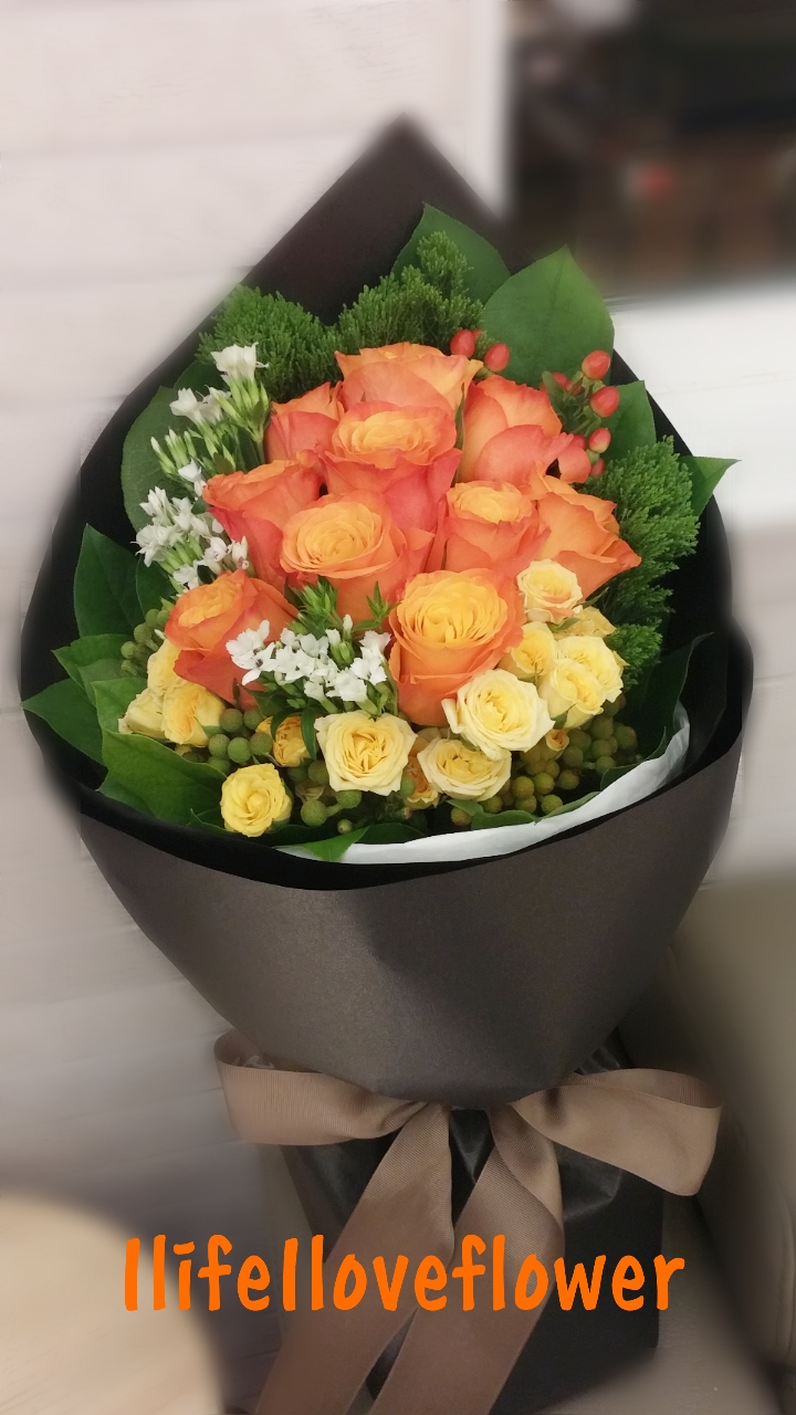 10支肯雅橙玫瑰襯肯雅小玫及小足球