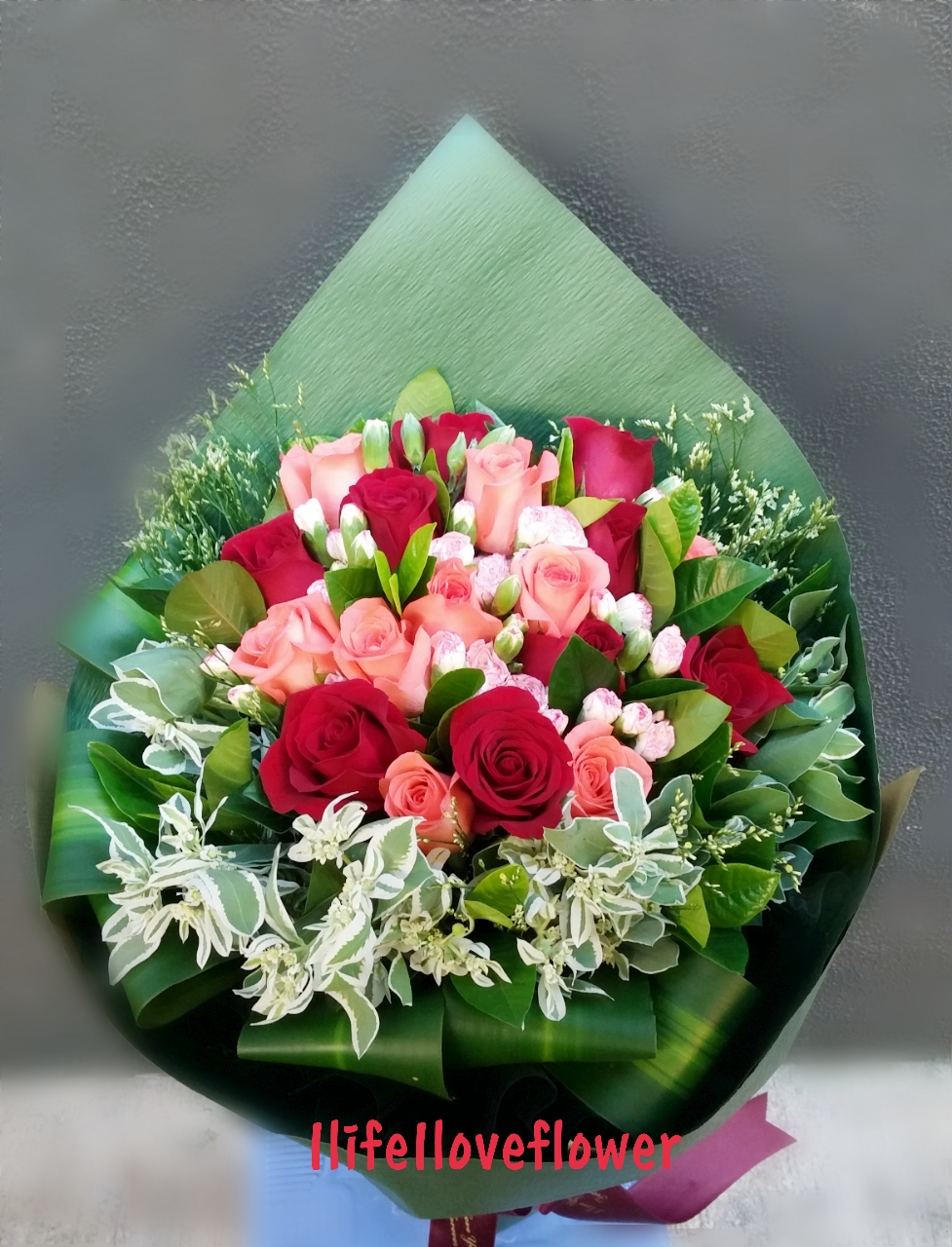 9支紅玫加9支粉玫花束, 送俾媽媽至岩心水.