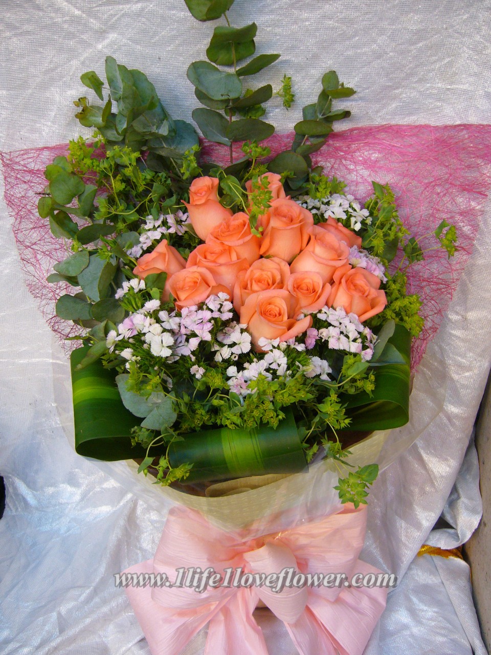 480元: 20支粉玫加襯花