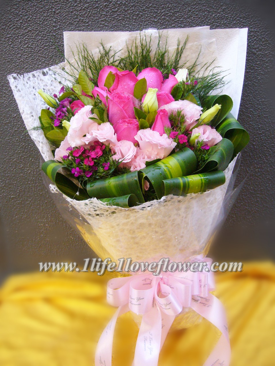 11枝桃紅玫瑰加襯花