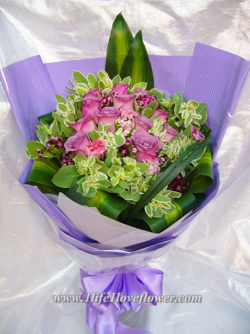 12枝紫玫瑰, 石竹梅, 葉上花. 冷豔既紫玫瑰, 有些女生特別喜歡, 可以留意一下她是不是有一點cool的類型