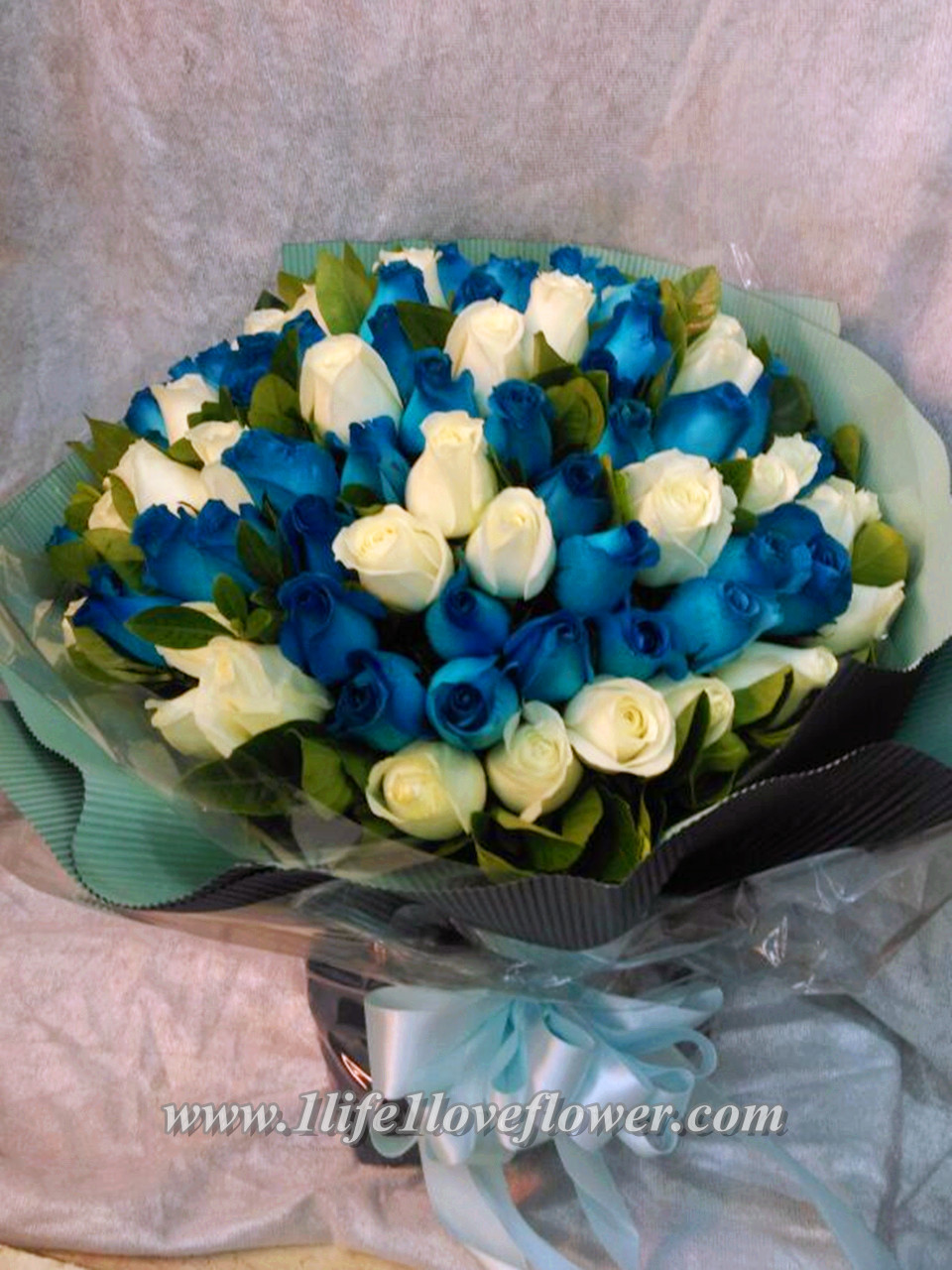 60支藍玫39支白玫瑰花束.99支玫瑰代表天長地久.