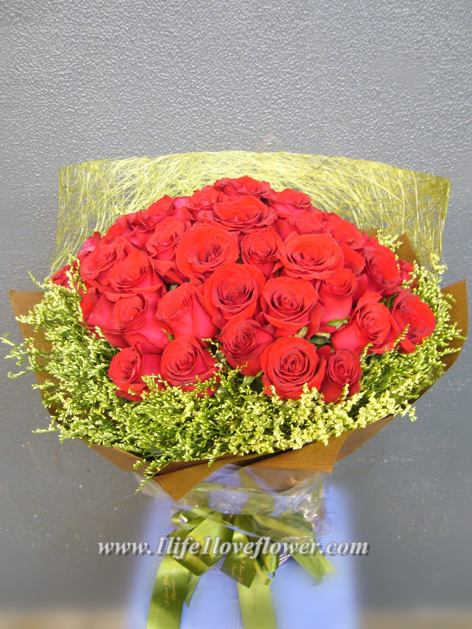 99枝紅玫瑰, 黃水晶. 紅玫瑰代表熱戀.求婚之選.