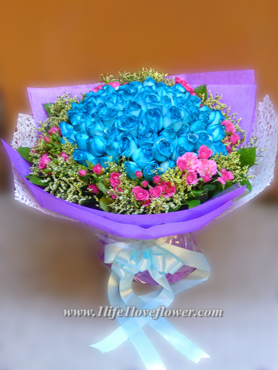 99支藍玫瑰, 實在是每個女人收到都會尖叫的一種色系, 是最浪漫的一種玫瑰花.送給你最珍愛的她吧.