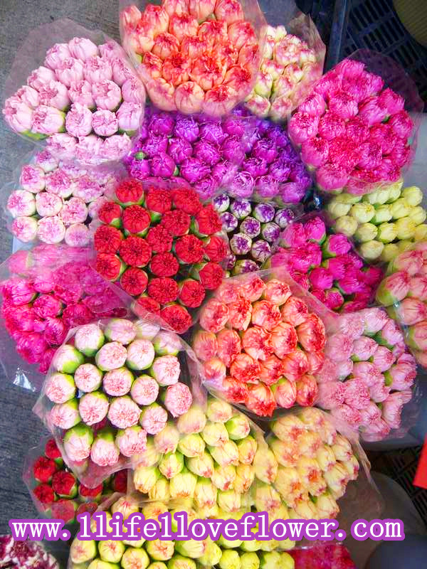 獨立包裝單支康乃馨, 100支或以上4元一支, 300支或以上3.5元一支,1000支或以上3元一支