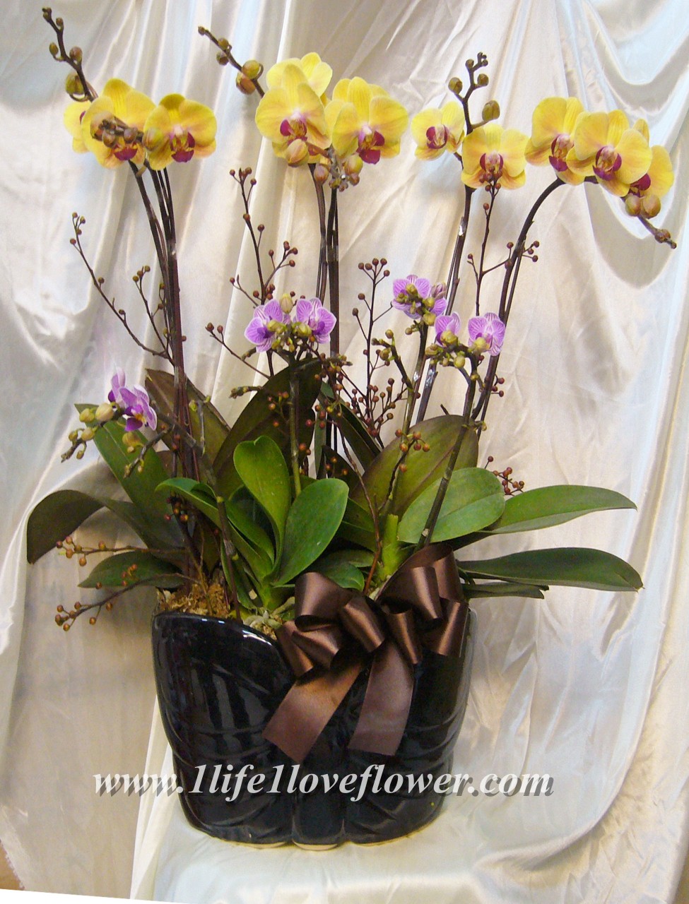 4枝王皇蝴蝶蘭加2枝小飛象