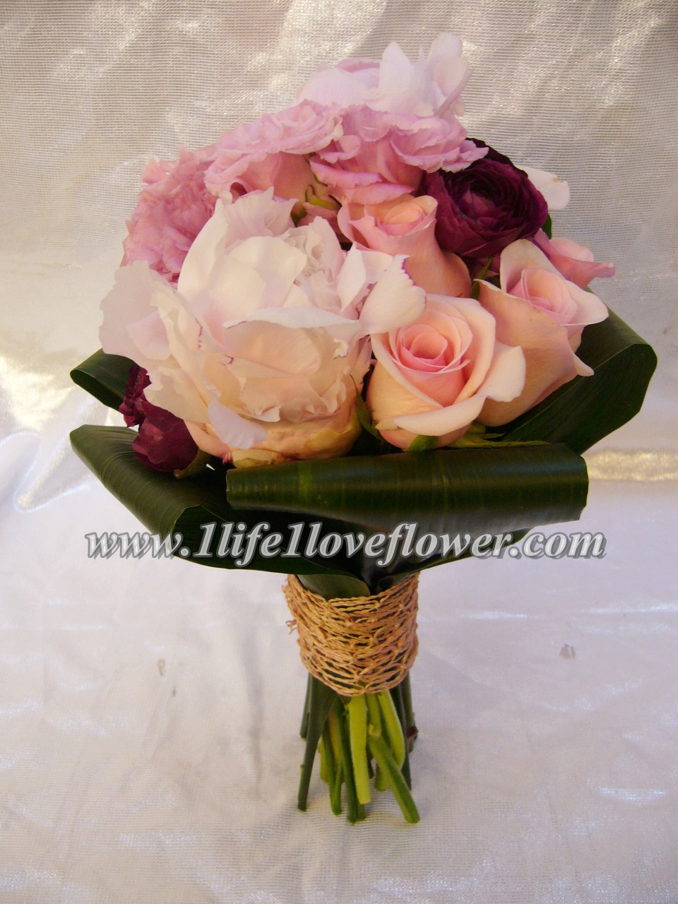 荷蘭牡丹, 粉玫, 桔梗捧花