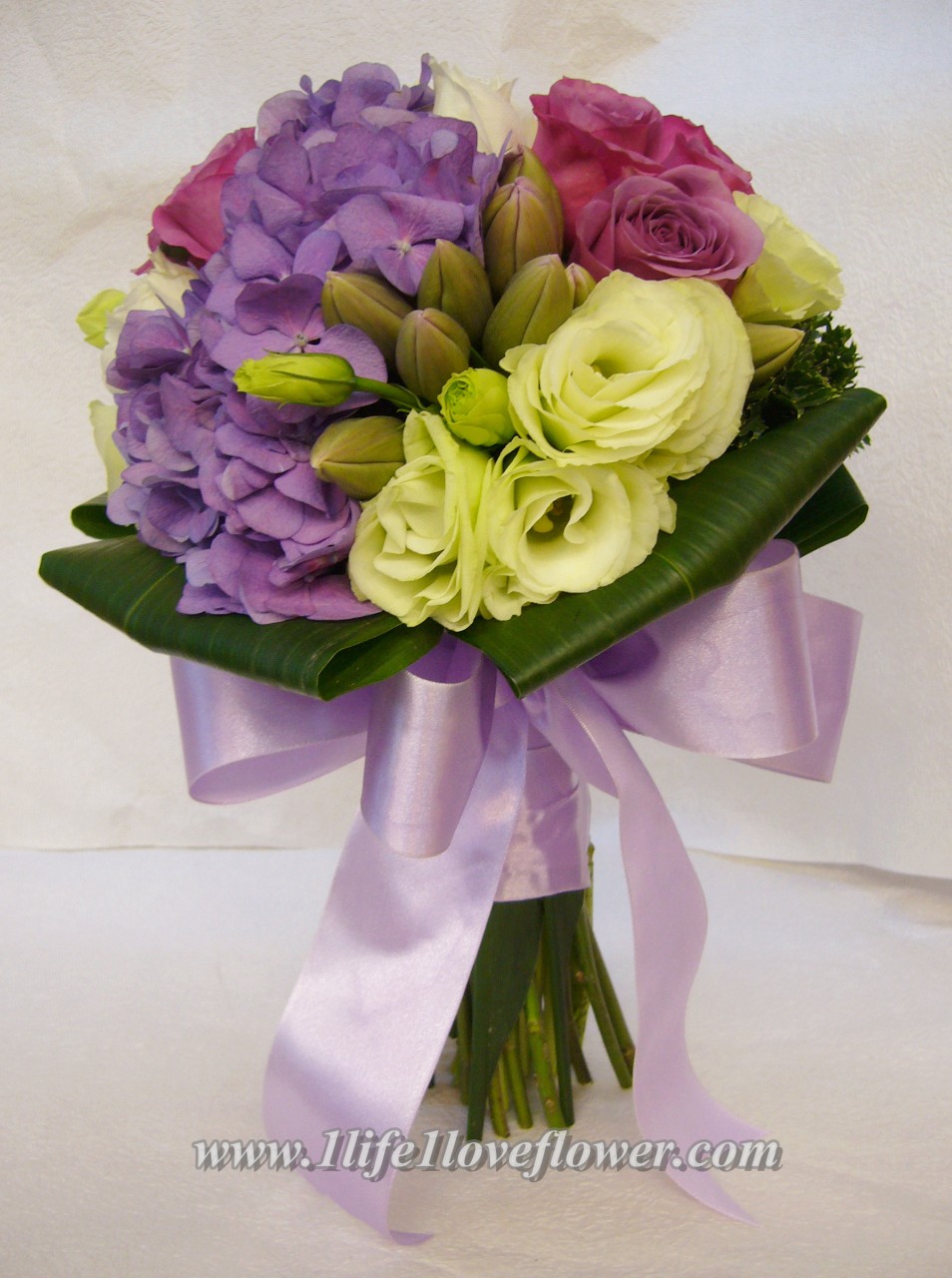 花材: 荷蘭綉球, 荷蘭屈金香, 紫玫, 襯花