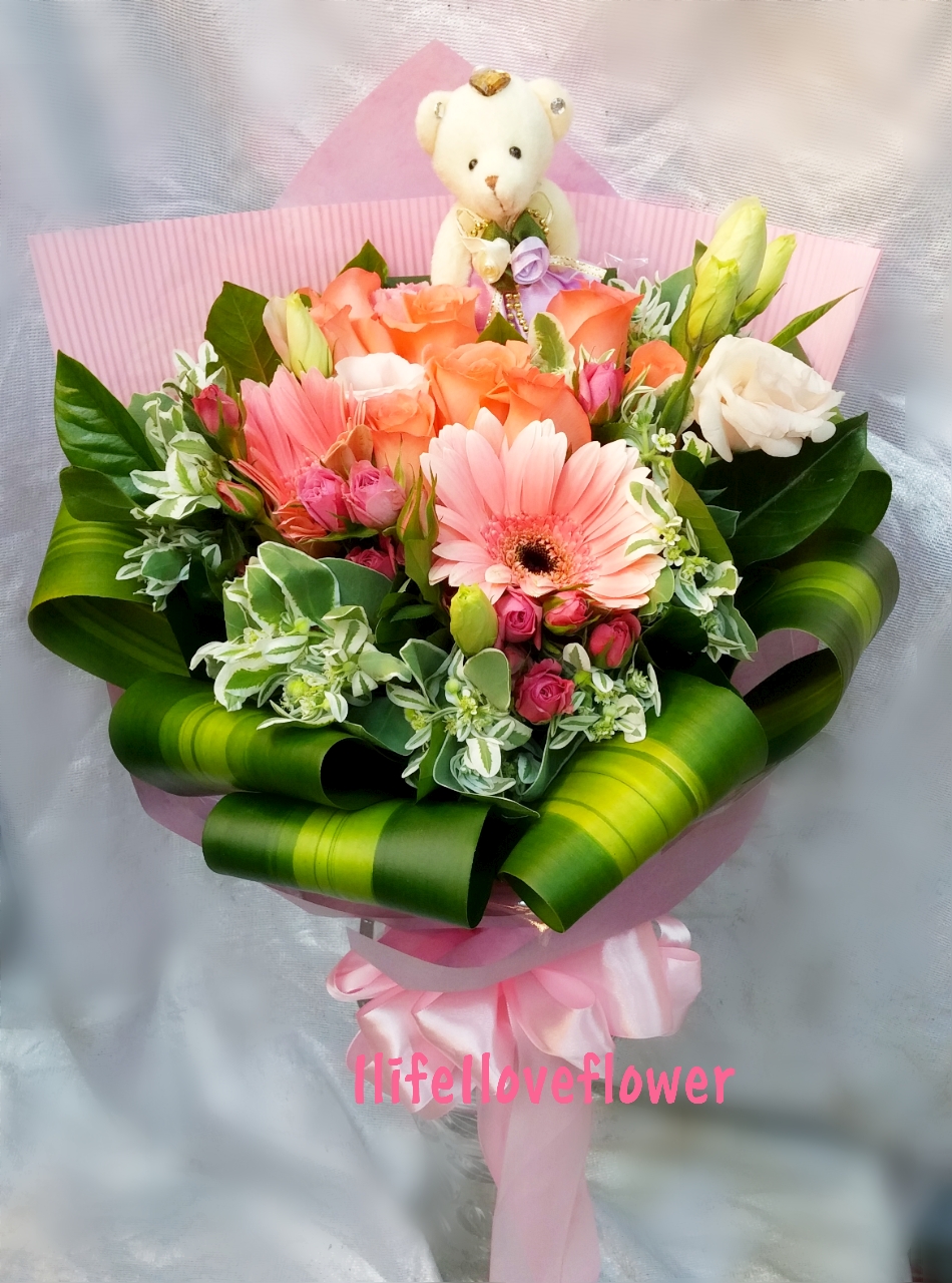 粉玫, 太陽花花束,加送可愛小熊一個